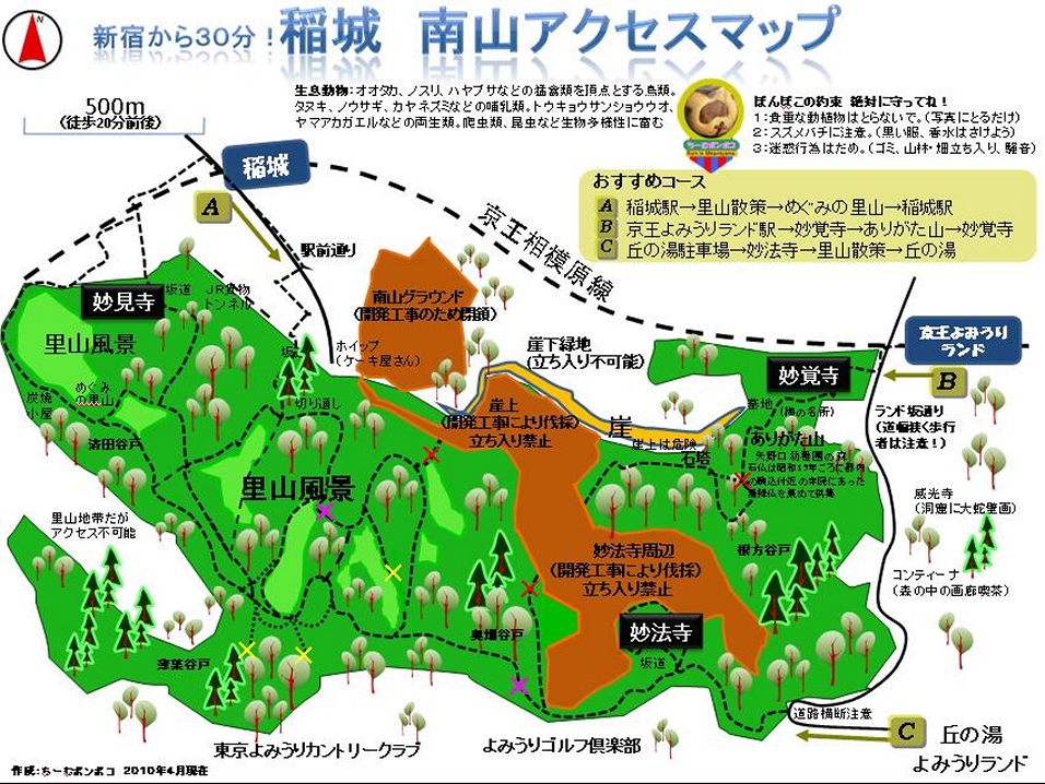 今年2009年3月頃にミクシーというSNSで高校生が稲城市の南山がどんどん山の木が切られ、山肌が削られていく姿を見て