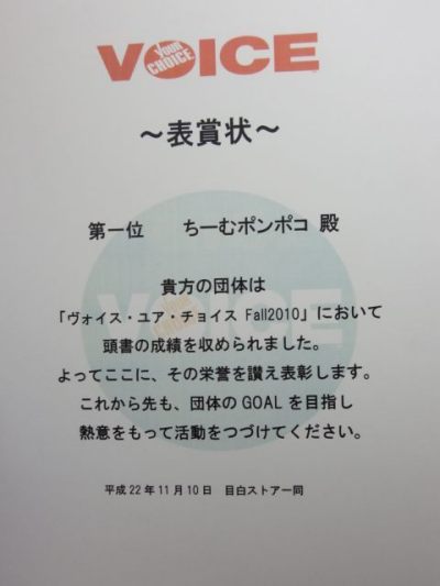 平成22年11月10日 Voice Your Choice (ボイス・ユア・チョイス)受賞