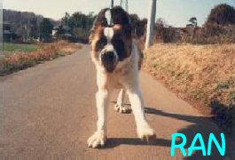都内に住んでいる通販の方がセントバーナードの子を3頭 生ませたがお店で売ることもできず困っていたので引き取ったのがランです。 この年に上野動物園でパンダのランランが亡くなった時でもあるのでランと名前を 考えました。