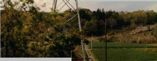 - 中央の鉄塔はJRの送電線で山梨県内の中央線の電源です。畑はトウモロコシです。