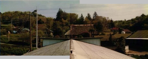 - 下の屋根は昔の牛舎です。10年前には隣の家は茅葺き屋根でした。右側はその家の牛舎です。