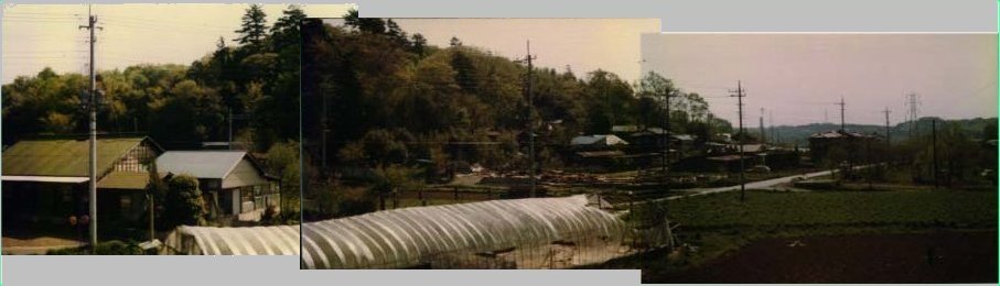 - 中央の鎮守の森が北八幡さま、遠くの丘陵は京王堀之内駅周辺です。この頃はまだ丘陵ですね。